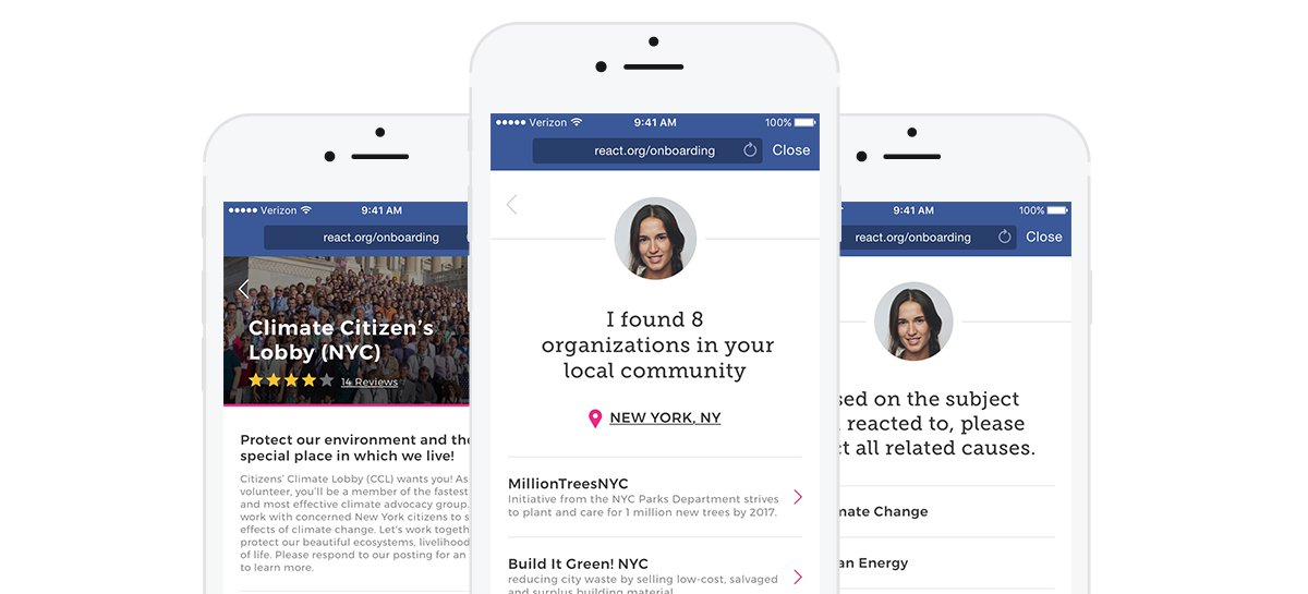 REACT! Connects nonprofits and community organizations with people who want to contribute to causes they’re passionate about.